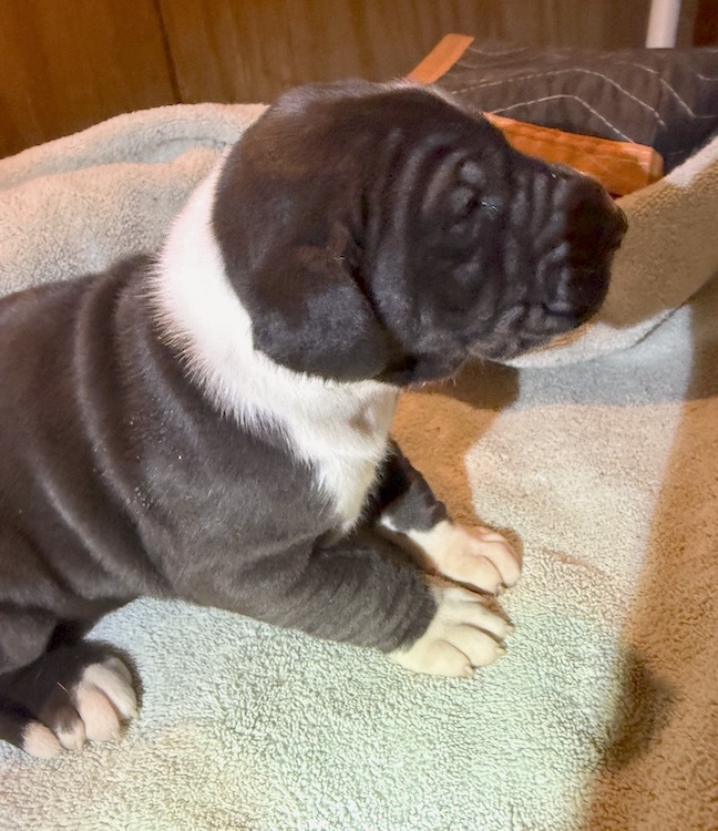 A new, thriving litter of registered/certified Great Dane puppies arrived in the early hours of November 11. Our first-time Fawn mother Dusty and our massive 3-year-old proven boy Kiffin (photos above) welcomed a hearty group of puppies who have already received a perfect newborn checkup and had their dew claws removed. As expected with first-time litters, the numbers of pups in the pack are small but the pups themselves are MIGHTY – sporting a well above average birth weight.